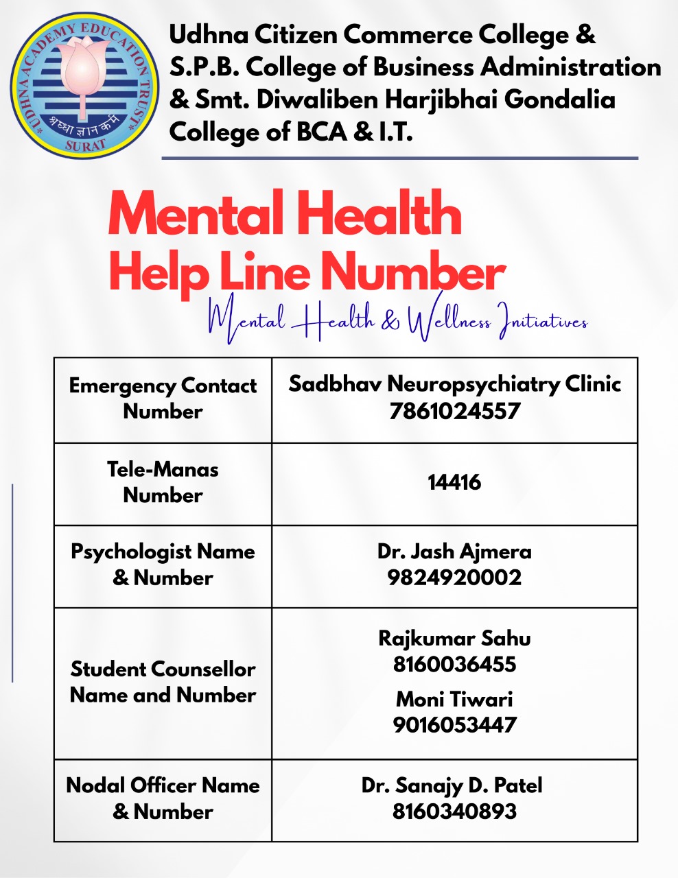 • Heading: Mental Health Helpline number
